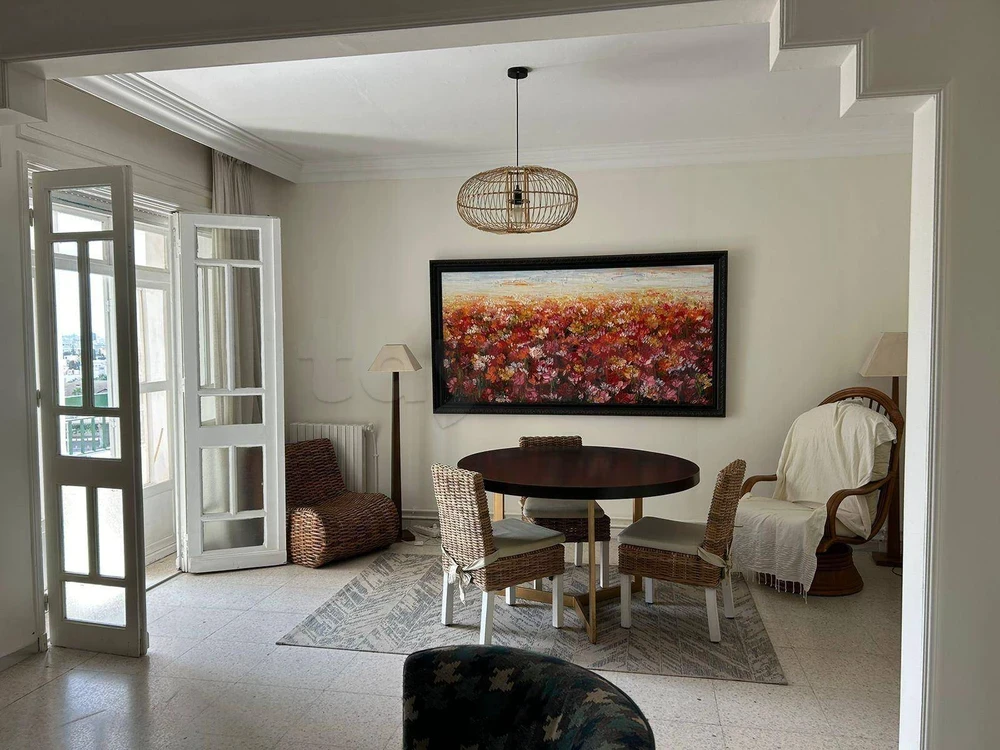a louer un très bel appartement s+4 à alain savary prés la municipalité el khadhra situé au 6éme étage avec double ascenseurs codé dans une résidence calme et sécurisé et très bien entretenue. lappartement est de 165 m² habitable , 74 m² pour la partie commune , 4 m² cellier , 16 m² la place de parking , il est composé par un salon salle à manger avec un balcon , 4 chambres à coucher , une salle deau , une salle de bain, une cuisine et un séchoir , ainsi quil est doté par chauffage central .