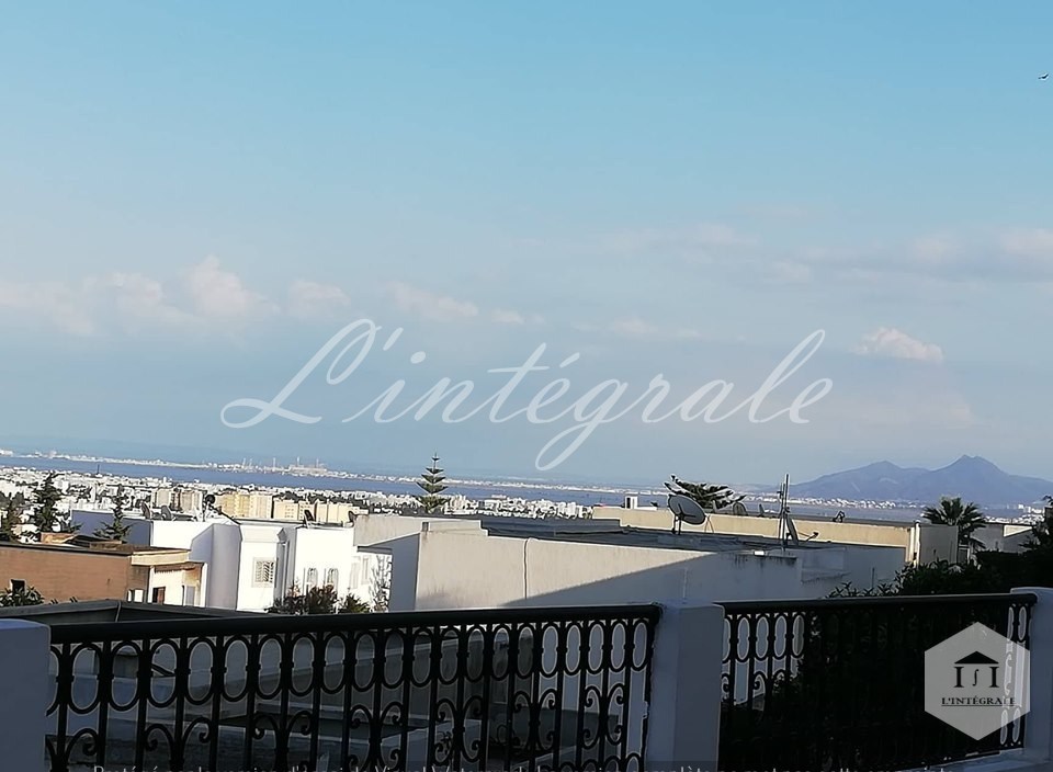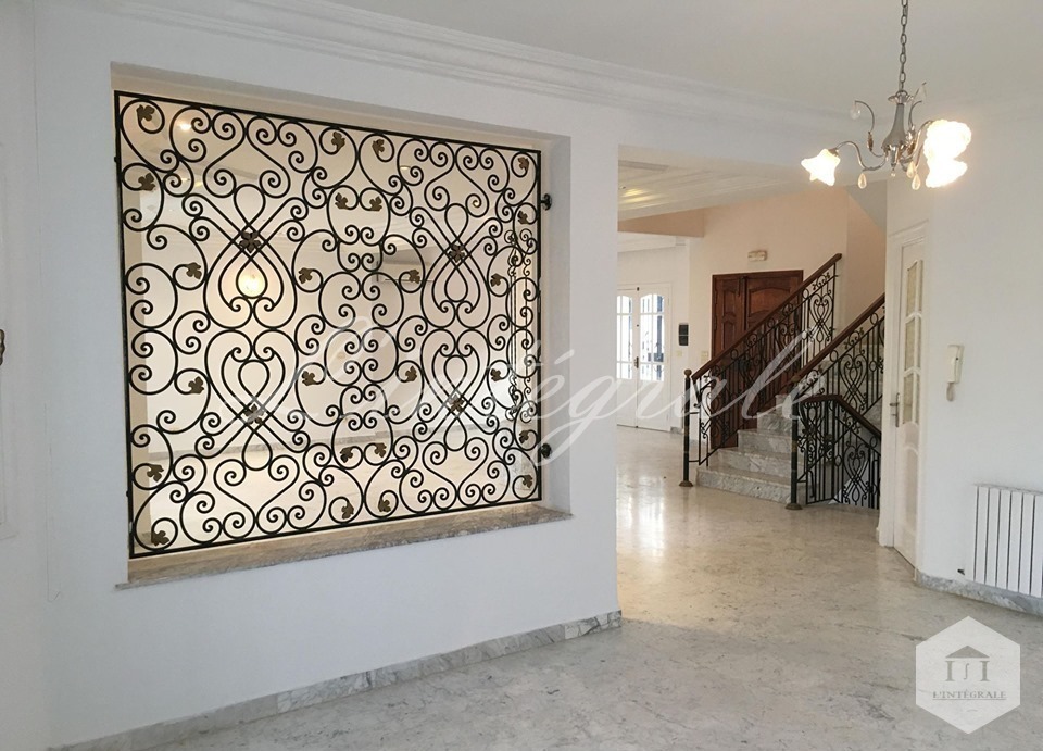 un beau jardin, une belle terrasse avec une vue panoramique sur grand tunis, garage pour 2 voiture avec une porte électrique et une petite chambre de gardien .
