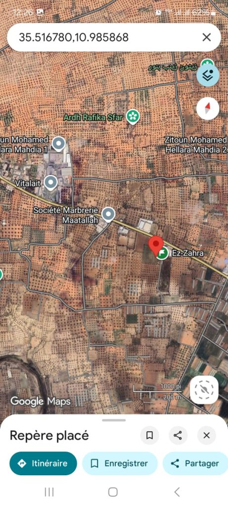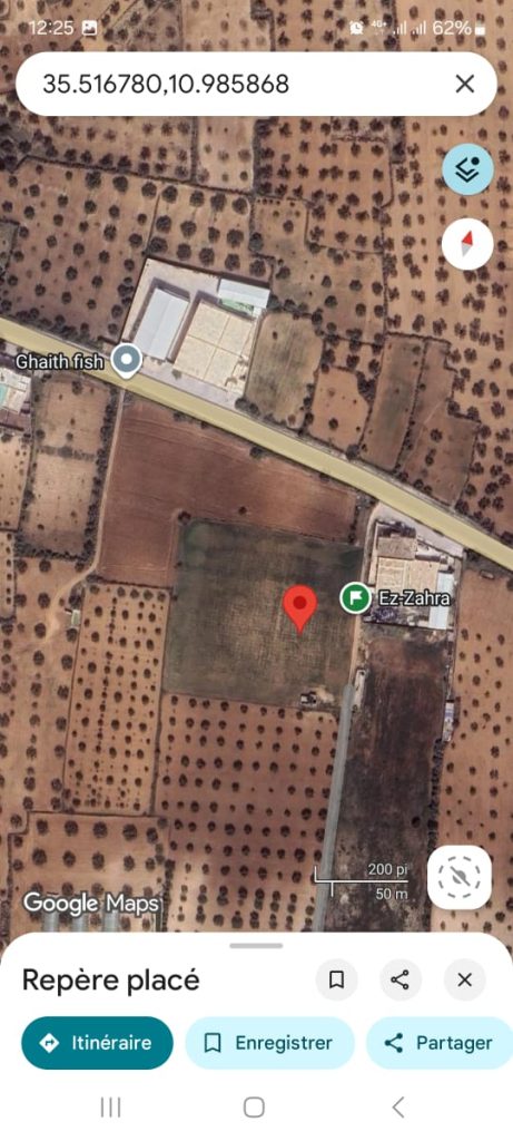 particulier met en vente deux lots de terrain agricole, titre bleu, séparés gouvernorat de mahdia, superficies : lot 1 :13 762 m2 (première position), lot 2 : 638 m2 deuxième position.