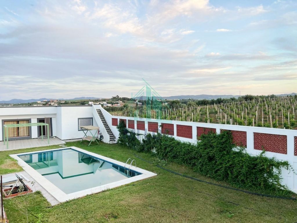 la partie résidentielle comprend une villa de 110 m avec une piscine 10 m x 4 m, un garage, et une loge pour gardien. les compteurs deau sonede et délectricité steg sont déjà installés.