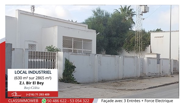 a seulement 20 minutes du port de radès, dans la zone industrielle de borj cédria, découvrez ce bâtiment industriel de 630 m², idéalement situé sur un terrain titré de 2865 m², entièrement clôturé. ce bien est proposé au prix attractif de 750000 dt.