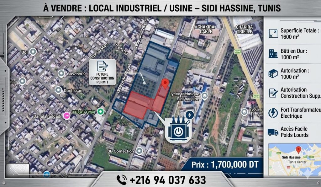 situé dans une zone stratégique à sidi hassine, avec accès facile et emplacement idéal pour activité industrielle, stockage ou investissement.