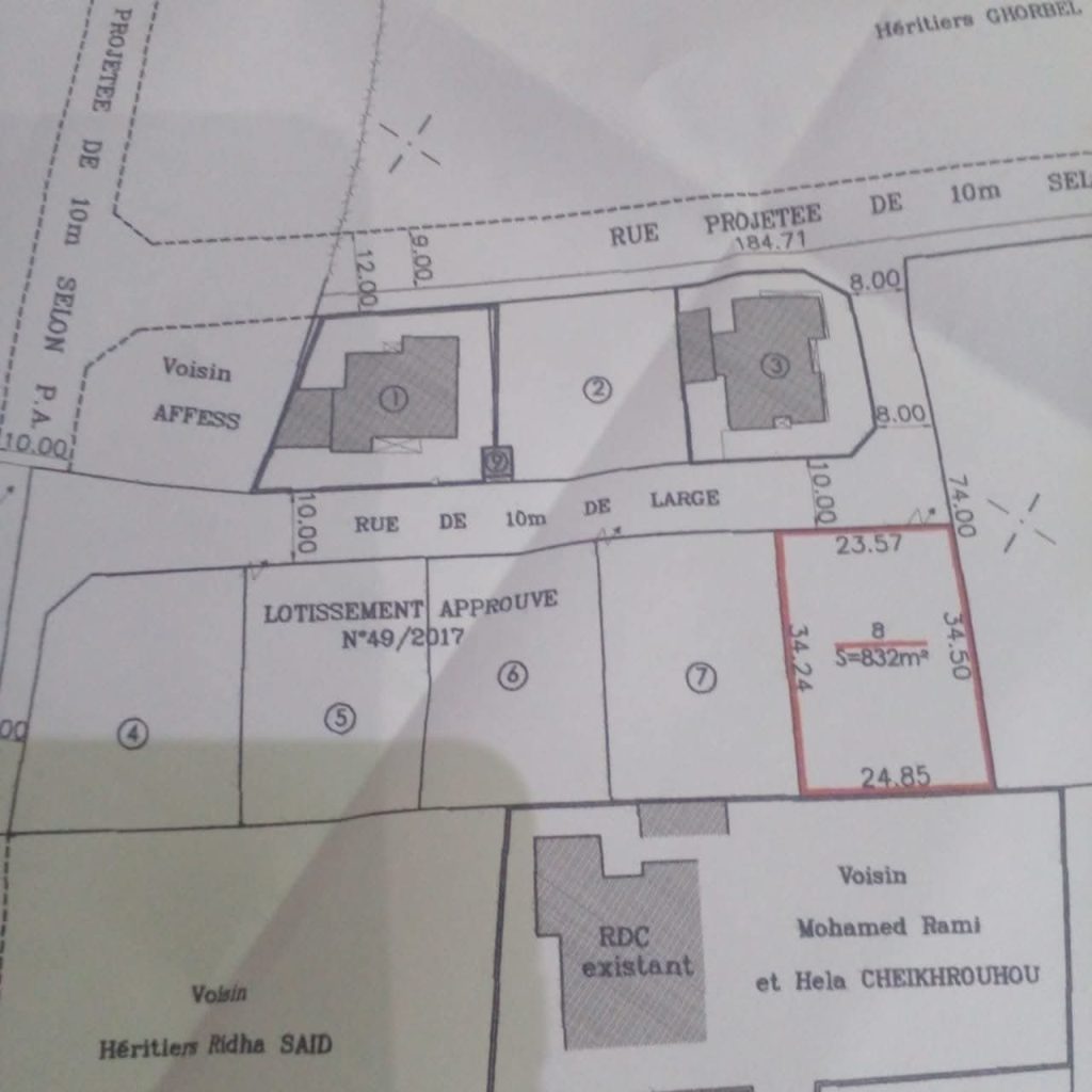 à vendre route el ain km 8 et demi un lot de terrain (n°8) de 832m2 au prix de 277 le m2 soit 230 md
