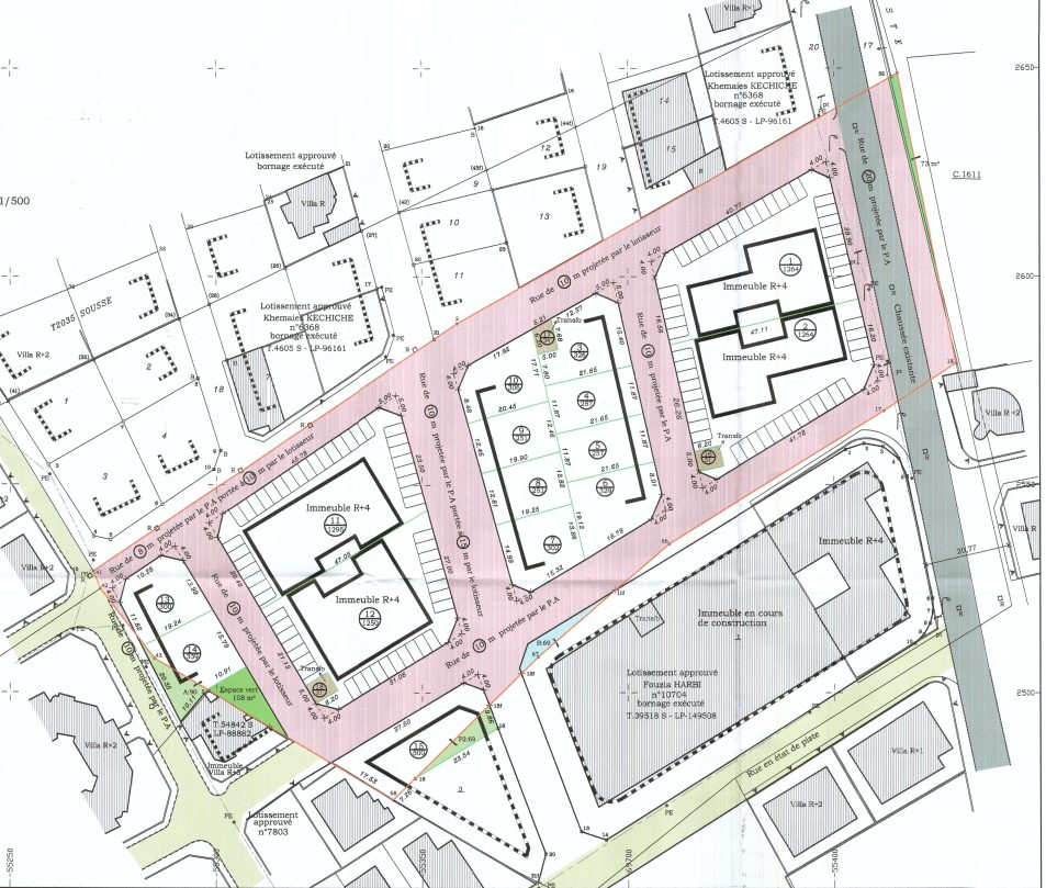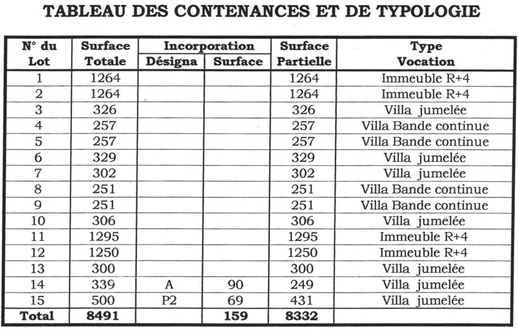 les surfaces des lots varient entre 251 m² et 500 m² pour les r+2, et 1250 m² pour les r+4.