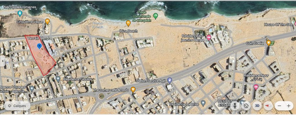 particulier met en vente des terrains pied dans leau dans un environnement résidentiel et un emplacement stratégique dans un lotissement approuvé sis à hergla gouvernorat de sousse, en face du monument historique « roman villa » et du restaurant « cinquième vague ».