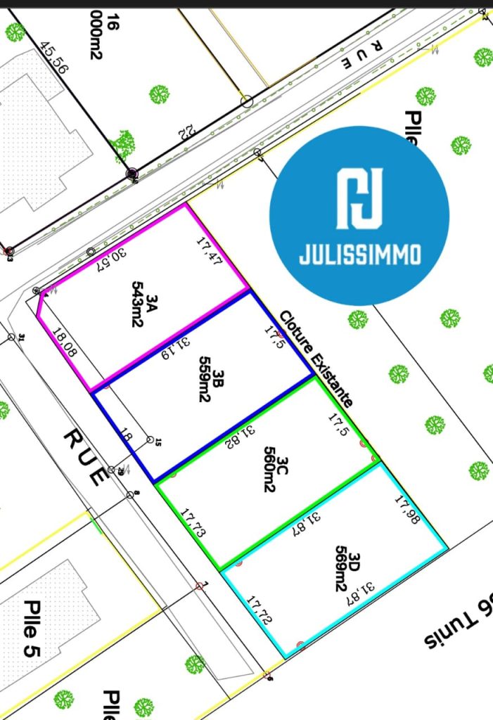 niché dans un environnement calme et élégant, ce terrain de 2231 m² divisé en quatre parcelles (voir plan) offre un cadre idéal pour construire votre maison de rêve. entouré de grandes villas, il bénéficie d’une ambiance paisible et haut de gamme.