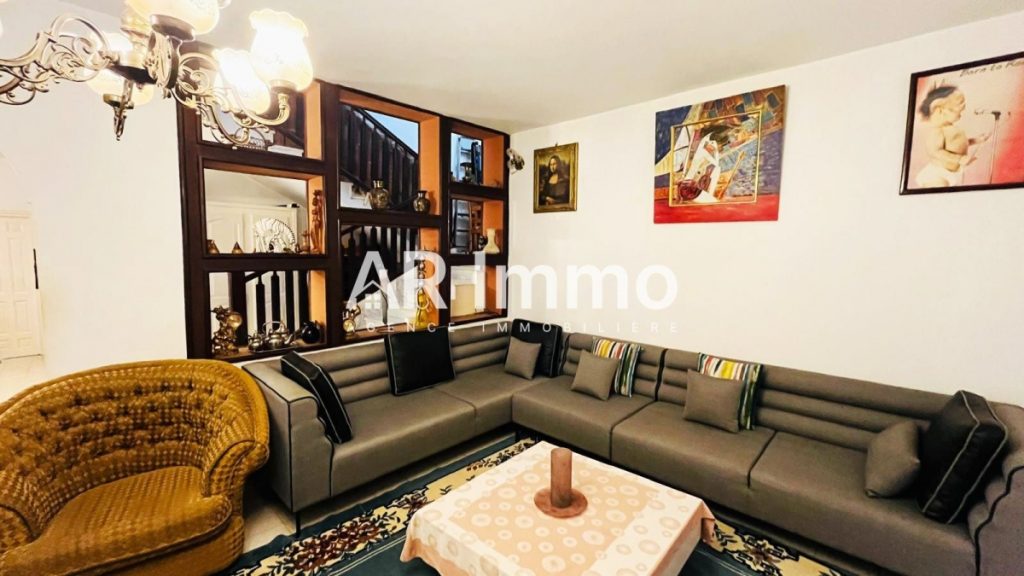 maison s+2 150 m² : salon, séjour, 2 chambres, cuisine, salle de bain équipée d’un jacuzzi.