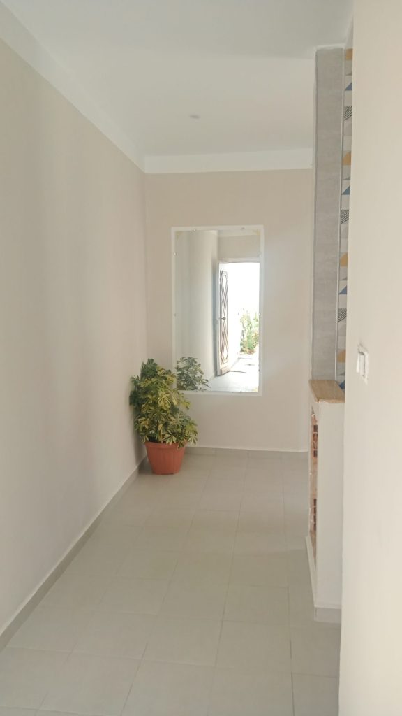 composée d’une chambre parentale, une chambre denfant, une grande salon, salle de bain, cuisine, deux séchoirs et véranda, deux garages de 20m2 chacun.