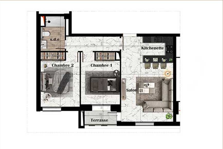 residence 9 appartements du s+0 et s+1 r+2 etage (sans ascenseur)