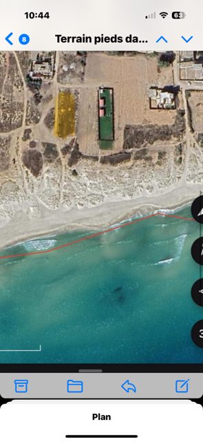 a vendre parcelle pieds dans l’eau avec 3 facades composée de 2 terrains : (rue de 6 m au nord, rue de 9 m à l’ouest et la mer au sud directement sur le sable d’or) situé à 150 m à gauche de l’hotel africa jade et une des plus magnéfiques et belles plages de la tunisie. il se trouve à 200 m du centre ville.