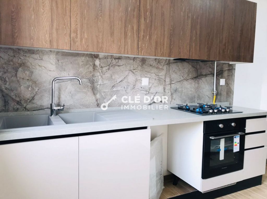 cet appartement jamais habité est dans une résidence bien sécurisé. l’entrée donne sur la pièce de vie, donne accès à un balcon. la cuisine indépendante est entièrement aménagée et équipée d’une hotte aspirante, d’une plaque de cuisson et d’un four électrique. la partie nuit est composé de deux chambres à coucher avec un dressing et une salle de douche.