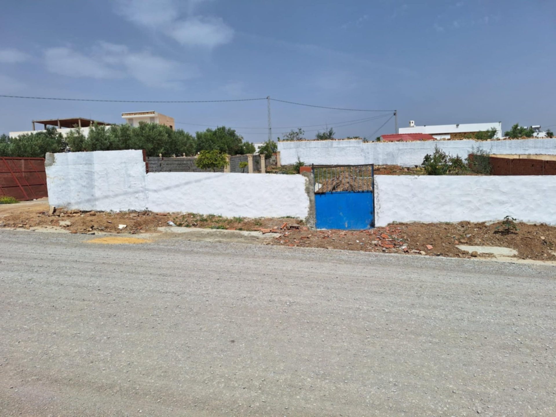 av à monchar , banlieue de yesmine hammamet, et à 7mn seulement de yesmine hammamet un terrain clôturé de 750 mètre carré papiers en règle, zone calme, sur la route entouré des villas de hautstanding .
