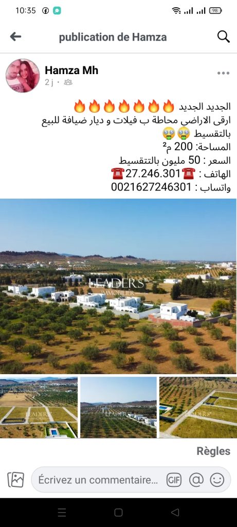 a vendre terrain de 10000m2 à el monchar sidi jdidi situé à 200metres de la route mc28. papiers en règle et titre foncier individuel. a 5minutes de hammamet sud en voiture