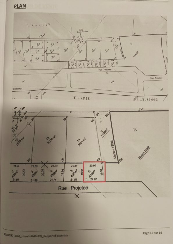 terrain carré ( 20/22 m) dans une nouvelle cité en cours de construction à borj touil aménagée avec une vue dégagée et acces à l’eau , electricité