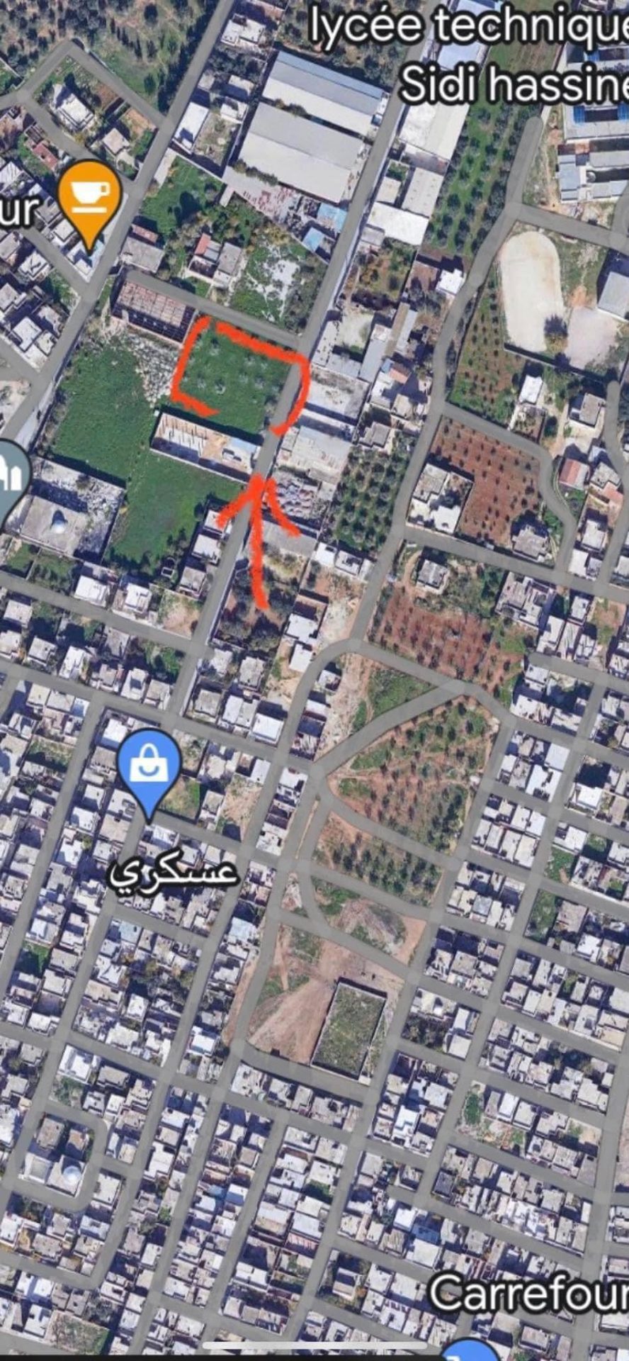 à vendre un lot de terrain de 2000 m2 pour usage commercial ou industriel (dépôt, usine) à sidi hssin sijoumi près de lusine de câble chkira.