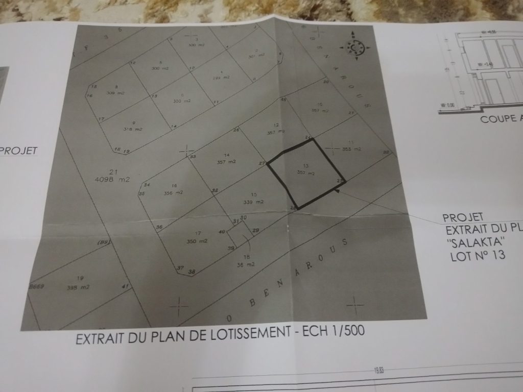 a vendre terrain nu de 357 m² , façade 19,8 m et de 18m de profondeur, conçu pour habitation r+2 , très proche de toute commodités , entouré par des villas, route de 12m de large et place parking de profondeur 2m , délégation boumhel bassatine, prix légèrement négociable , titre foncier individuel , papiers en règle avec plan de construction sous deux propositions. villa a deux niveaux ou 2 duplex. prix :1000 dinars par m² . pour toute infos consulter :