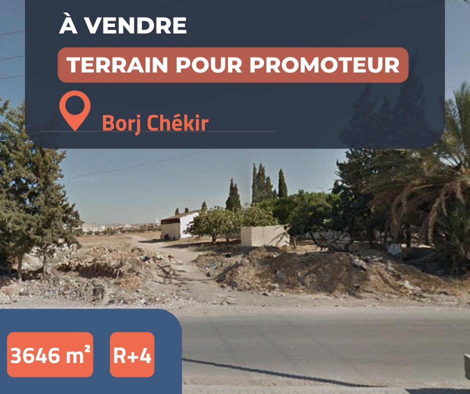 nous proposons à la vente un terrain de 3646 m², convenable pour un promoteur immobilier, constructible en r4 (16 m de haut) à borj chékir.