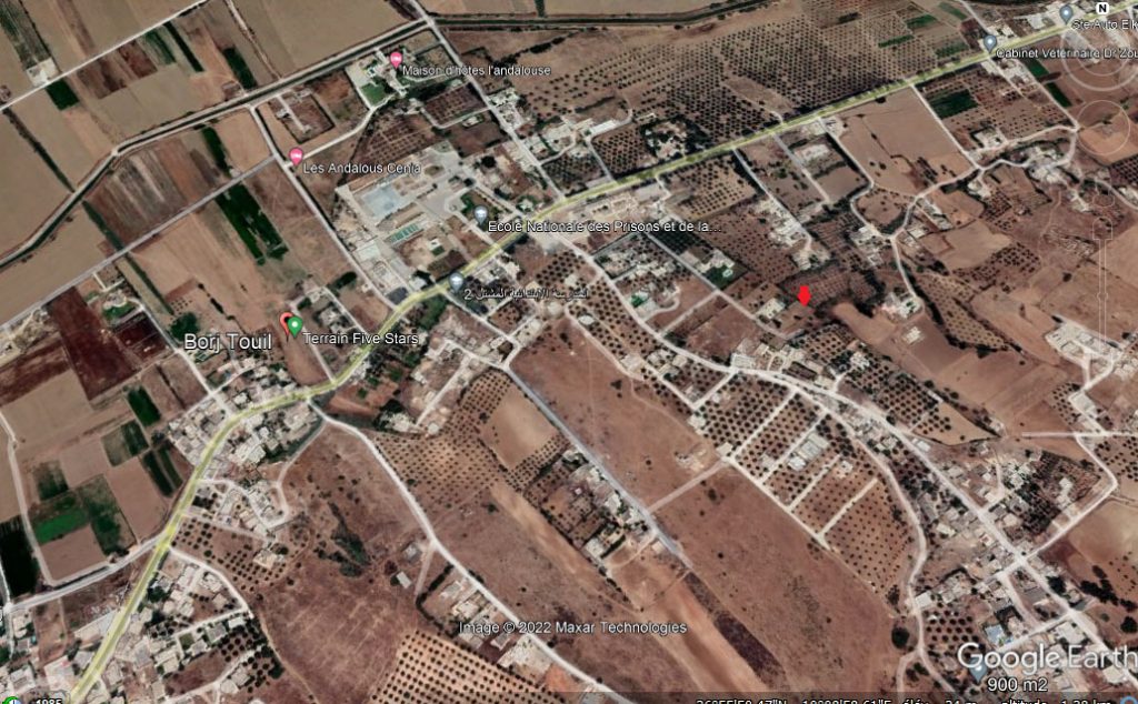 un terrain nu, clôturé des quatre côtés à hauteur de 3 m, près de lécole nationale des prisons et du collège borj touil à 3min de géant et a 15 min de arianna ville. superficie du terrain 1890 m2 avec un logement gardien déjà bâtit à lentrée à droite. zone d’avenir très prisée. dans une résidence privée clôturée de 10 000 m2 avec son entrée privée très calme avec un très bon voisinage que des villas de luxe.