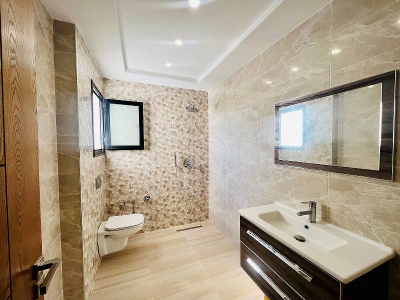 la villa est érigée sur deux niveaux, au rez-de-chaussée on trouve un grand salon salle à manger donnant sur le jardin et la piscine, une cuisine moderne et bien équipée, une chambre à coucher et une salle deau dinvitée.