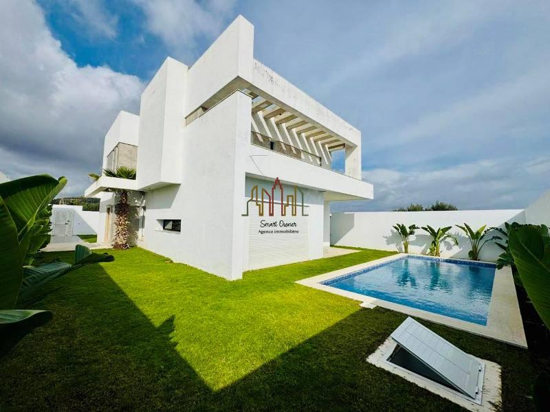 a vendre chez lagence smart owner immobilière hammamet, une magnifique villa vue sur mer nouvellement construite bien située dans un quartier chic et calme à hammamet nord à proximité de hôtel la badira.