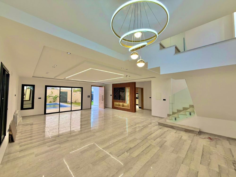 a vendre chez lagence smart owner immobilière hammamet, une villa moderne située à hammamet sud zone monchar. édifiée sur une superficie de 500m², cette villa se distingue par son design contemporain et ses espaces bien pensés.