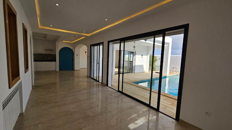 l’agence tps immobilière spécialiste en immobilier de lux, vous propose une fastueuse villa toute neuve avec une très belle vue dégagée sur les montagnes et sur une magnifique piscine, bien située à monchar dans une zone très tranquille et à 6 km seulement de yasmine hammamet.