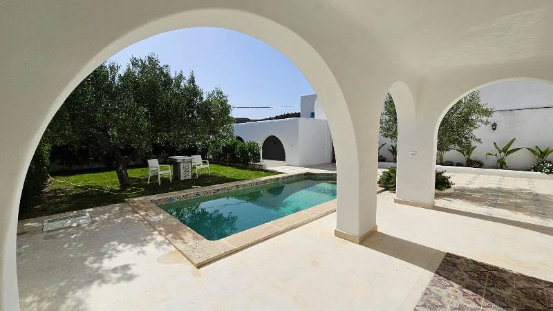 lagence tps immobilière met à votre disposition, une somptueuse villa avec piscine pour la vente, bien située à hammamet nord- zone kharrouba avec une magnifique vue dégagée sur la montagne.