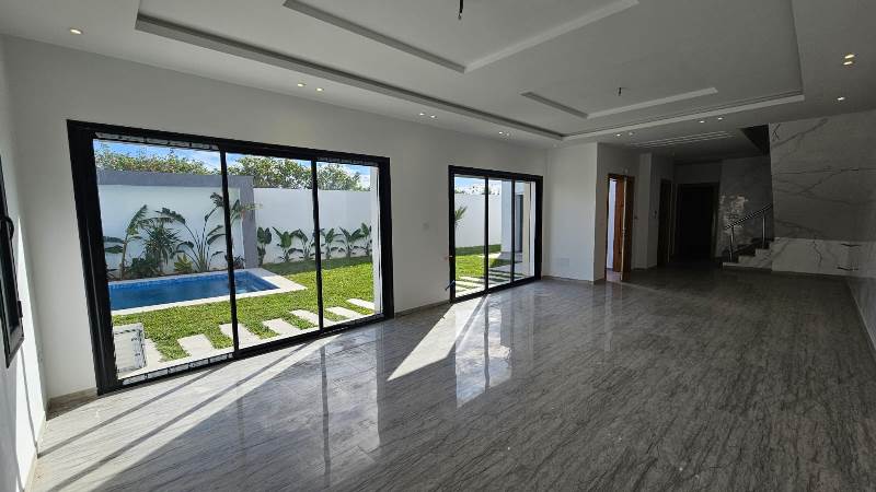 a vendre chez l’agence tps immobilière hammamet, une belle villa neuve ultra moderne avec une piscine et très bien orientée, bien située à l’entrée d’hammamet zone craxi.