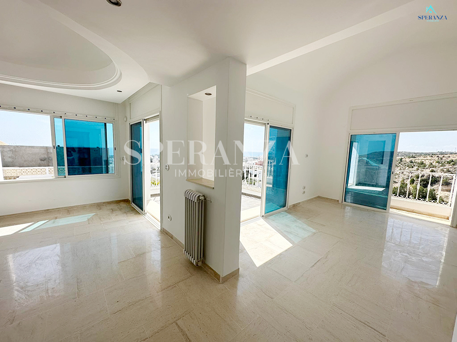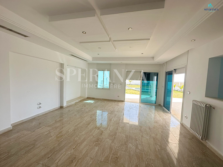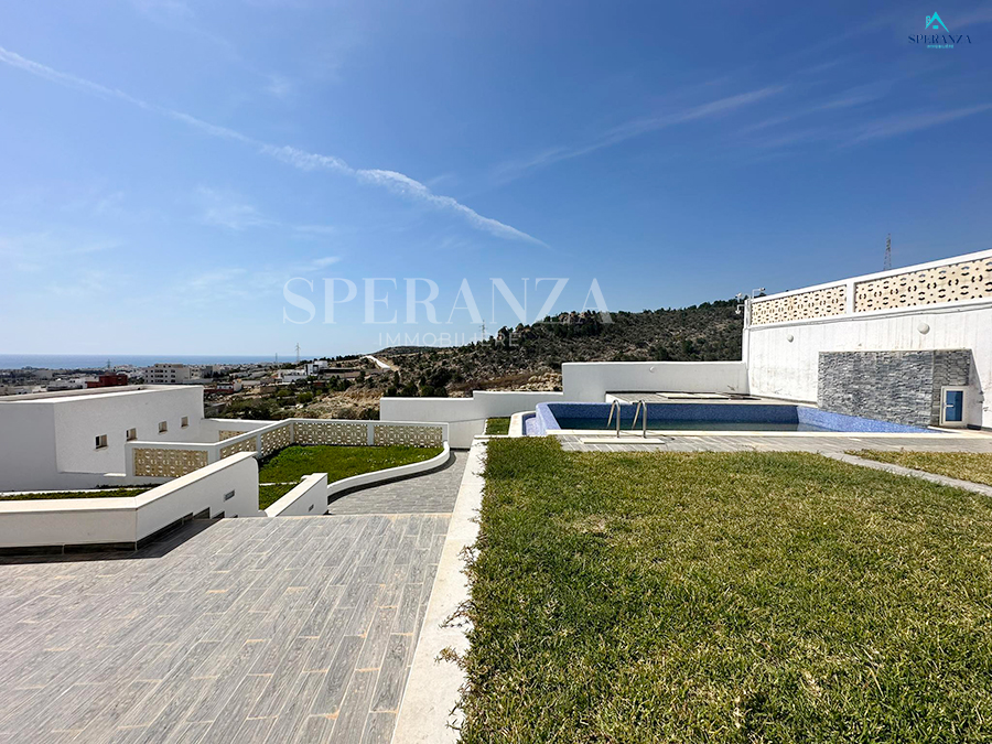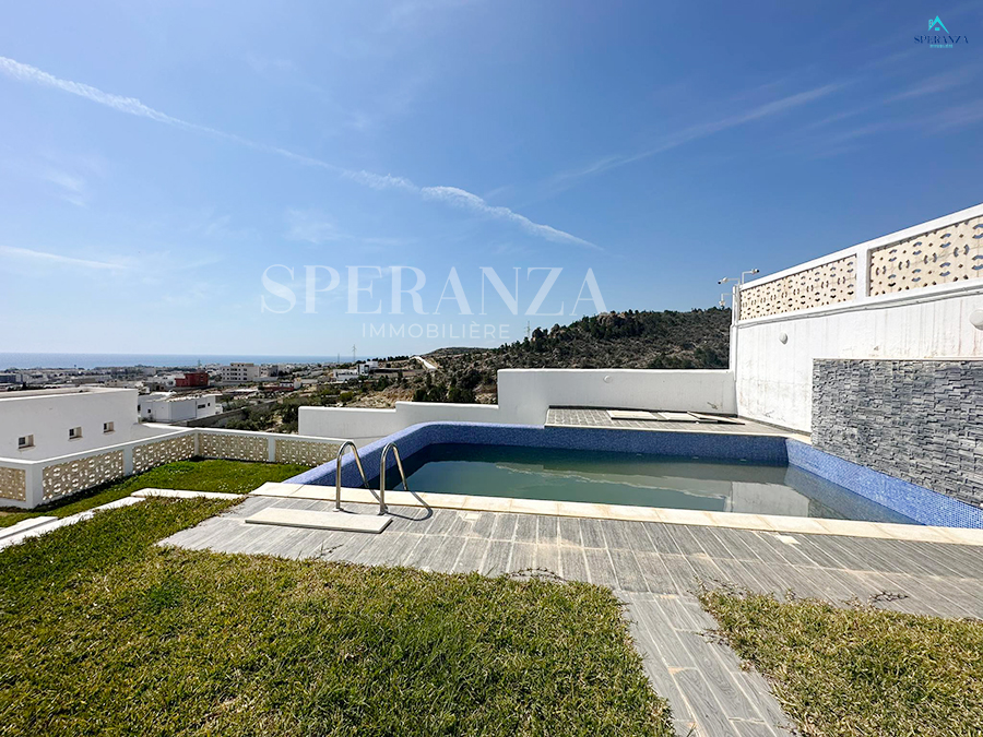 speranza immobilière vous propose à la vente cette villa situé à hammamet nord. l’entrée principale bénéficie d’un jardin gazonné qui offre plusieurs espaces, un piscine. au rez de chausser se trouve une salon lumineux grâce à ses fenêtre qui offre une vue sur le jardin,une cuisine aménagée avec des espaces de rangement,,une salle deau pour les invités,une chambre à coucher. un escalier nous mène vers 1 er étage qui se compose de deux chambres à coucher,une salle d’eau ,une suite parentales avec terrasse qui offre une vue sur mer. un garage pour la voiture